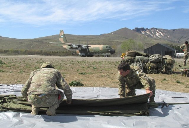 La Compañía de Apoyo de Lanzamiento Aéreo Paracaidista 4 operó tomando como hipótesis la activación de una catástrofe natural que requirió el lanzamiento de cargas desde aviones C-130 Hercules de la FAA, en una zona a agreste y sin servicios de apoyo. A bordo de estos cuatrimotores de la Fuerza Aérea, se insertó personal por medio de lanzamientos de apertura manual, lo que incluyo el lanzamiento de rescatistas por medio de los sistemas de lanzamiento en tándem. Para estas tareas se utilizaron contenedores normalizados tipo A22 y paracaídas G12 y G14, más la utilización de los nuevos paracaídas Chaja 12. (Luis Piñeiro, corresponsal de Grupo Edefa en Argentina)