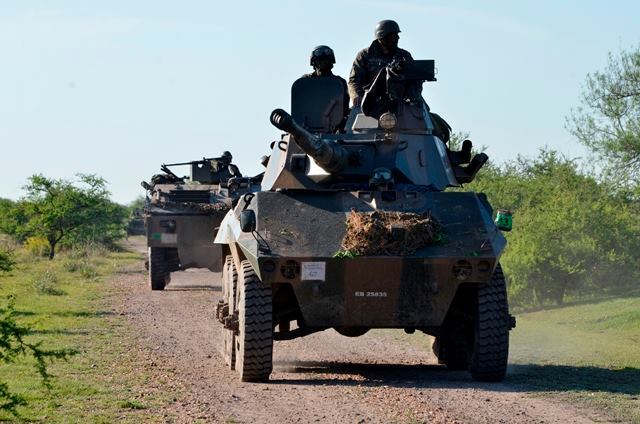 ·Vehiculos blindados Cascabel con 90 MM y de transporte de tropas Urutu del EBR.