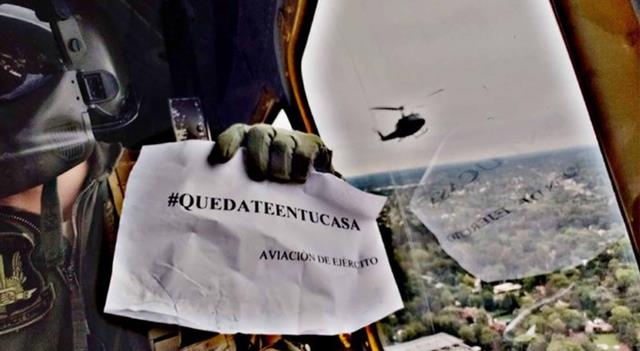 Los helicópteros castrenses operan día y noche, movilizando tropas, funcionarios y equipos médicos, a la vez que realizan patrullas aéreas diurnas y nocturnas para cubrir áreas sensibles. Se han modificado y preparado helicópteros para función de evacuación sanitaria, los cuales están a orden en sus bases y plenamente operativos.