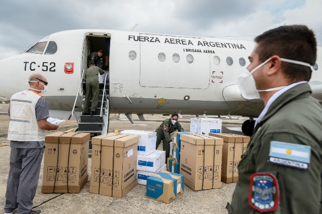 La FAA se multiplica llevando carga a todos lados en este caso respiradres y elementos de sanidad.