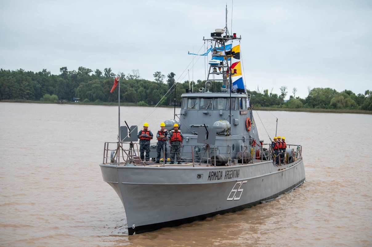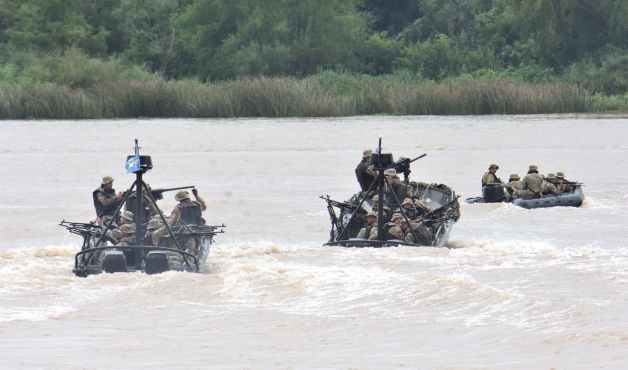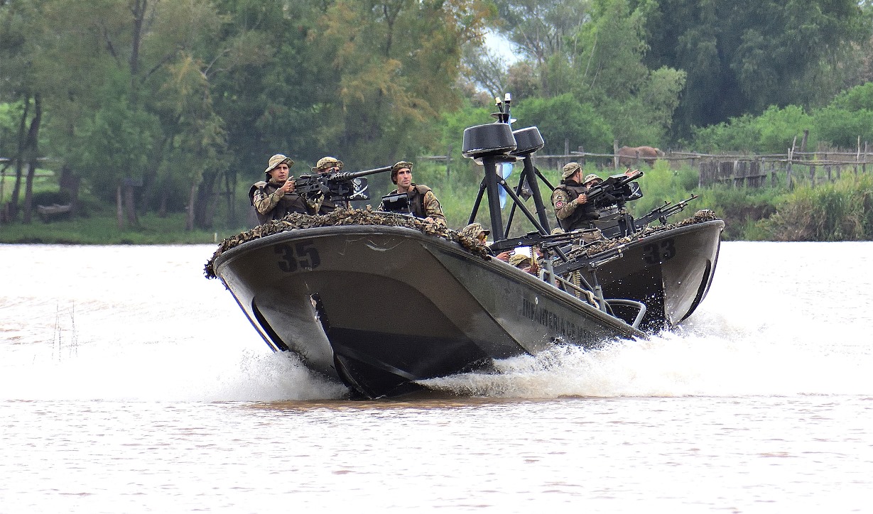 Lanchas rapidas Guardian de la INMARA con lanzagranadas MK19 y MAG operando en apoyo de la mision.