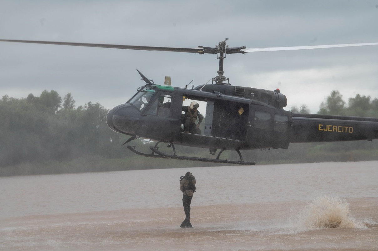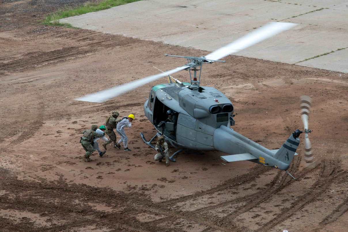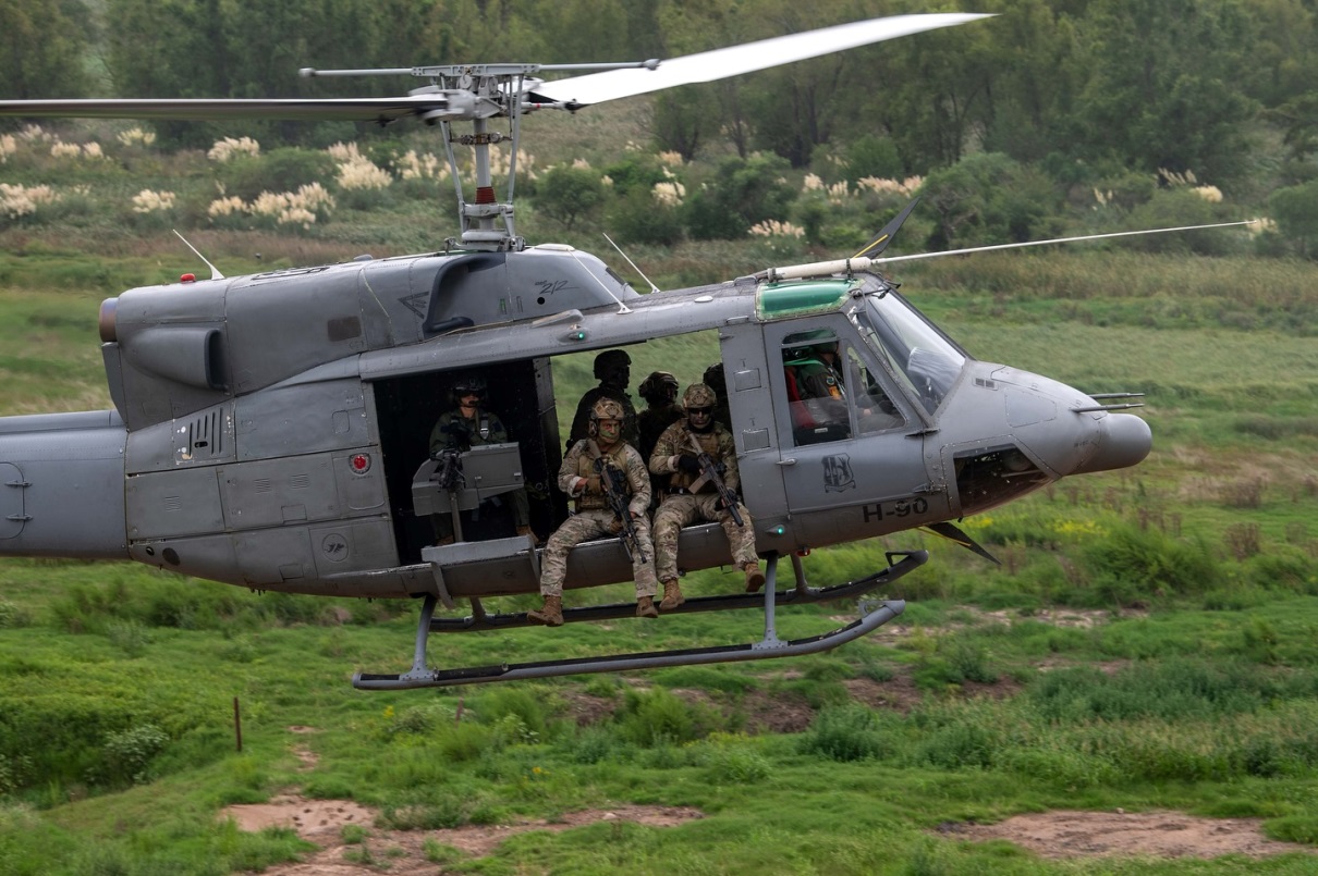 Un Bell 412 de la FAA transportando a efectivos del GOE.
