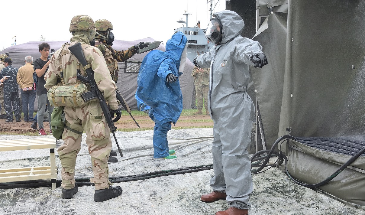 La Fuerza Naval participó con elementos de la Base Naval Zarate y la División Patrulleros Fluviales (ARA King, Ara Zarate y ARA Rio Santiago), así como tropas del Batallón de Infantería de Marina 3. Cabe mencionar que, a fines del pasado año, el ooder ejecutivo nacional firmó decretos que modifican en ciertos puntos el accionar de las instituciones armadas. En uno de ellos, concretamente el 1107, se indica que los objetivos estratégicos pueden ser custodiados por personal castrense, mientras que otro decreto, el 1112, menciona que el personal militar puede actuar en forma efectiva ante amenazas y agresiones de origen externo, que se desarrollen en espacios terrestres, marítimos, fluviales, aeroespacial del país. De tal modo, se programó un ejercicio que indicaba un ataque a una central nuclear, en este caso la de Atucha y, la respuesta organizada y centralizada de casi setecientos efectivos de unidades especiales del país.