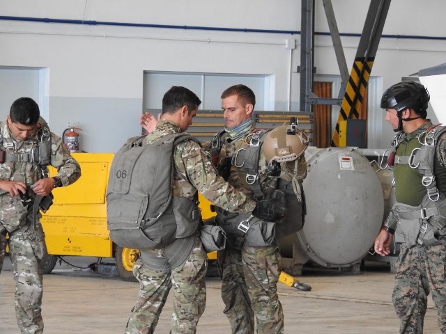Para realizar esta actividad las compañías de comandos contaron con el apoyo del Comando de Aviación de Ejército, quien dispuso de aviones de transporte CASA C212 preparados para el lanzamiento paracaidista por compuerta. La facilidad de disponer de estas aeronaves permitió ejecutar cincuenta lanzamientos de paracaidistas mediante la técnica de apertura automática y veinticuatro lanzamientos de apertura manual.