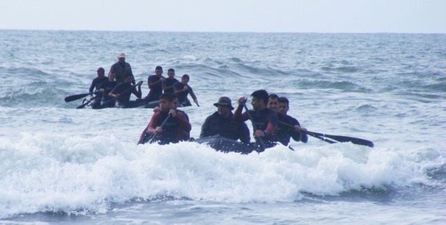 Fotografía: Los cadetes de ultimo año se entrenan en tecnicas de supervivencia en el mar.
