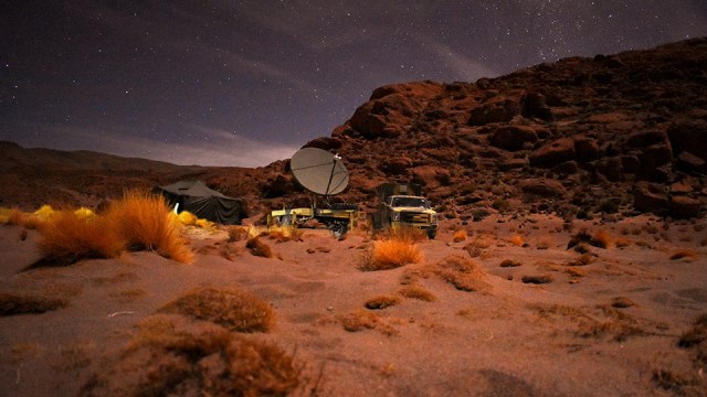 ·Bajo un cielo estrellado las antenas satelitales del EA