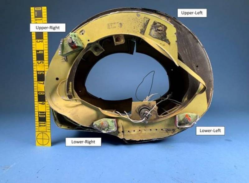 Foto apertura: Hardware de fijación del brazo de cola superior izquierdo que se encontró con los restos del fuselaje principal.