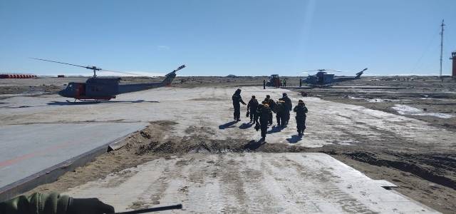 Mediante los helicópteros de la Fuerza Aérea Argentina, se trasladó a los efectivos desde la Base Marambio hacia la Base Petrel, donde cumplirán servicio durante todo el año 2022.