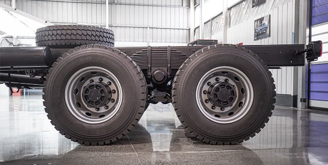 Entre las particularidades de esta versión 6×4, podemos mencionar el mayor despeje trasero, que se debe a que la reducción que generalmente se realiza dentro del bulbo de los ejes traseros, en el 32.360 se realiza en 2 etapas. La primera se efectúa en el piñón y corona albergados en el centro de cada eje trasero, y la segunda etapa de reducción se completa con un mecanismo llamado tren epicicloidal, contenido dentro de las mazas de rueda. Este paquete reductor se conoce como “reducción en los cubos”. Así, esta variante se destaca por ofrecer una capacidad máxima de tracción de 70.000 Kg.