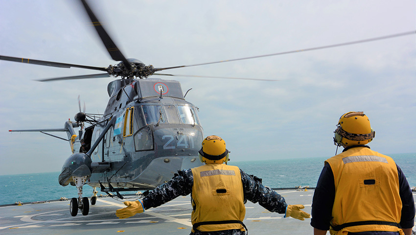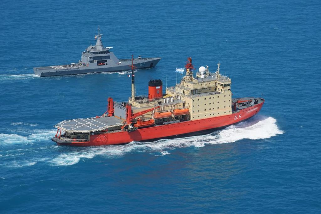 En su larguísima singladura hacia el continente blanco, el rompehielos ARA “Almirante Irizar” de la Armada Argentina fue escoltado por el OPV ARA “Piedrabuena” en un tramo de la navegación. Durante el mismo, se sumaron dos helicópteros Sikorsky UH-3H Sea King (2-H-241 y 2-H-243) de la Segunda Escuadrilla Aeronaval de Helicópteros (EAH2) más todo el componente del Grupo Aeronaval Embarcado (GAE), que operará desde el rompehielos para el transporte de personal y material.
