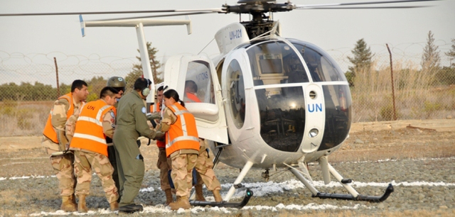 En el terreno, el oficial de entrenamiento de la FTA49, Capitán Gastón Rojas, expuso la situación general al Force Commander y los procedimientos que se debían aplicar y los resultados. Desde hace muchos años, las Fuerzas Armadas argentinas mantienen un importante grupo de militares en Chipre, que incluye un par de helicópteros a disposición de la ONU. (Luis Piñeiro, corresponsal de Grupo Edefa en Argentina)