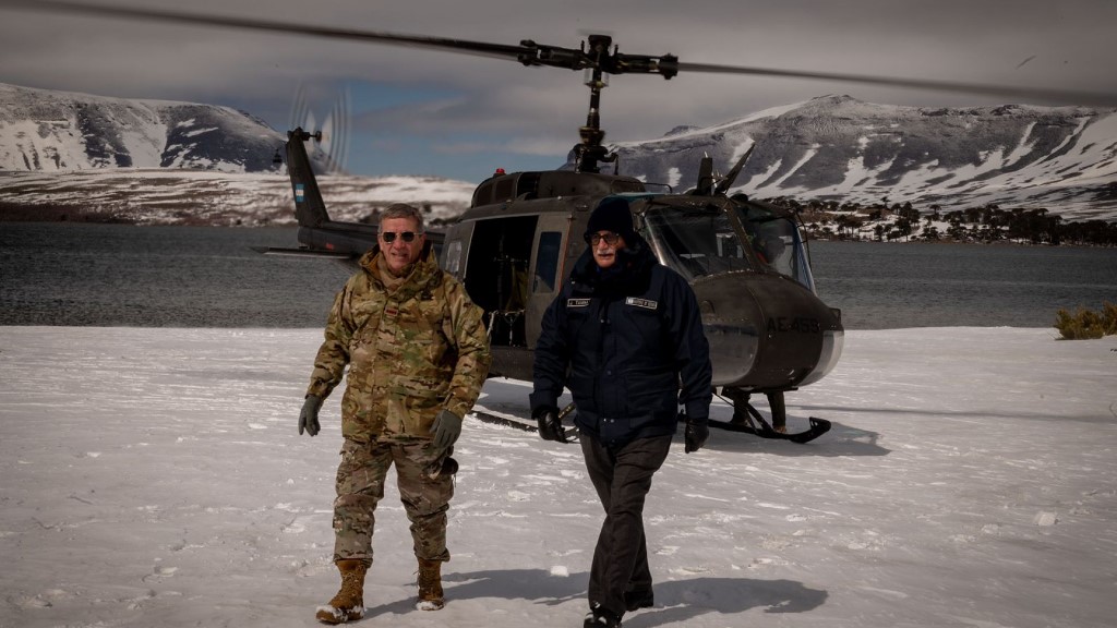 “Sostener la presencia argentina ininterrumpida en la Antártida es una política de Estado”, destacó el funcionario desde la zona de entrenamiento, lugar que por primera vez registra la visita de un ministro de Defensa.