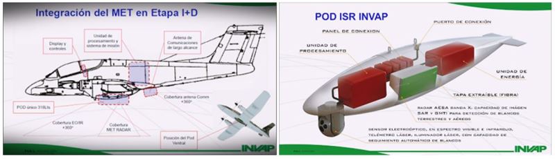 Para el desarrollo evolutivo del POD ISR, el proyecto fue delineado desde su inicio en mayo de 2020 en sucesivas etapas denominadas Modelos de Evaluación Tecnológica (MET), que han demostrado ser muy eficientes para sistemas de alta complejidad. El presente contrato contempla el desarrollo de un radar SAR Aerotransportado integrado en el POD (inicialmente un tanque de combustible de 318L del Pucará, adaptado a su nueva función), en el que se integran además un sistema electro-óptico, sistema de misión, y comunicaciones, obteniendo un sistema con capacidades operacionales, así como un nuevo desarrollo de tecnología de antena de barrido electrónico activo (AESA) para el radar. Ya se están realizando pruebas de los materiales por parte de los ingenieros de la institución patagónica y también en la plataforma aérea, en este caso un bimotor Pucara.