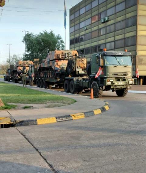 Fotografias: Vehículos de Combate de Artillería Palmaria modernizados del Ejército Argentino llegando a la Patagonia