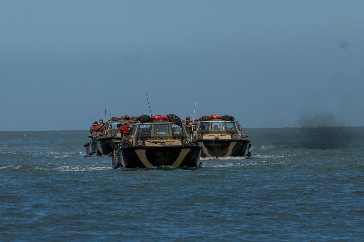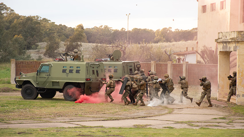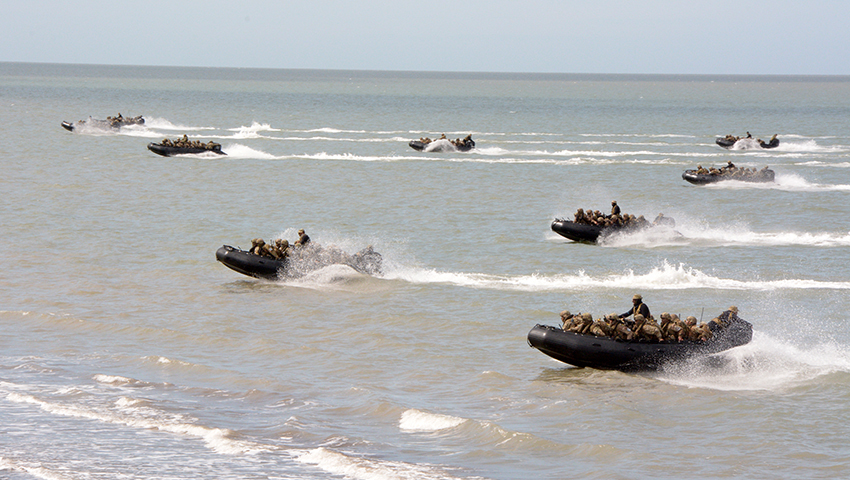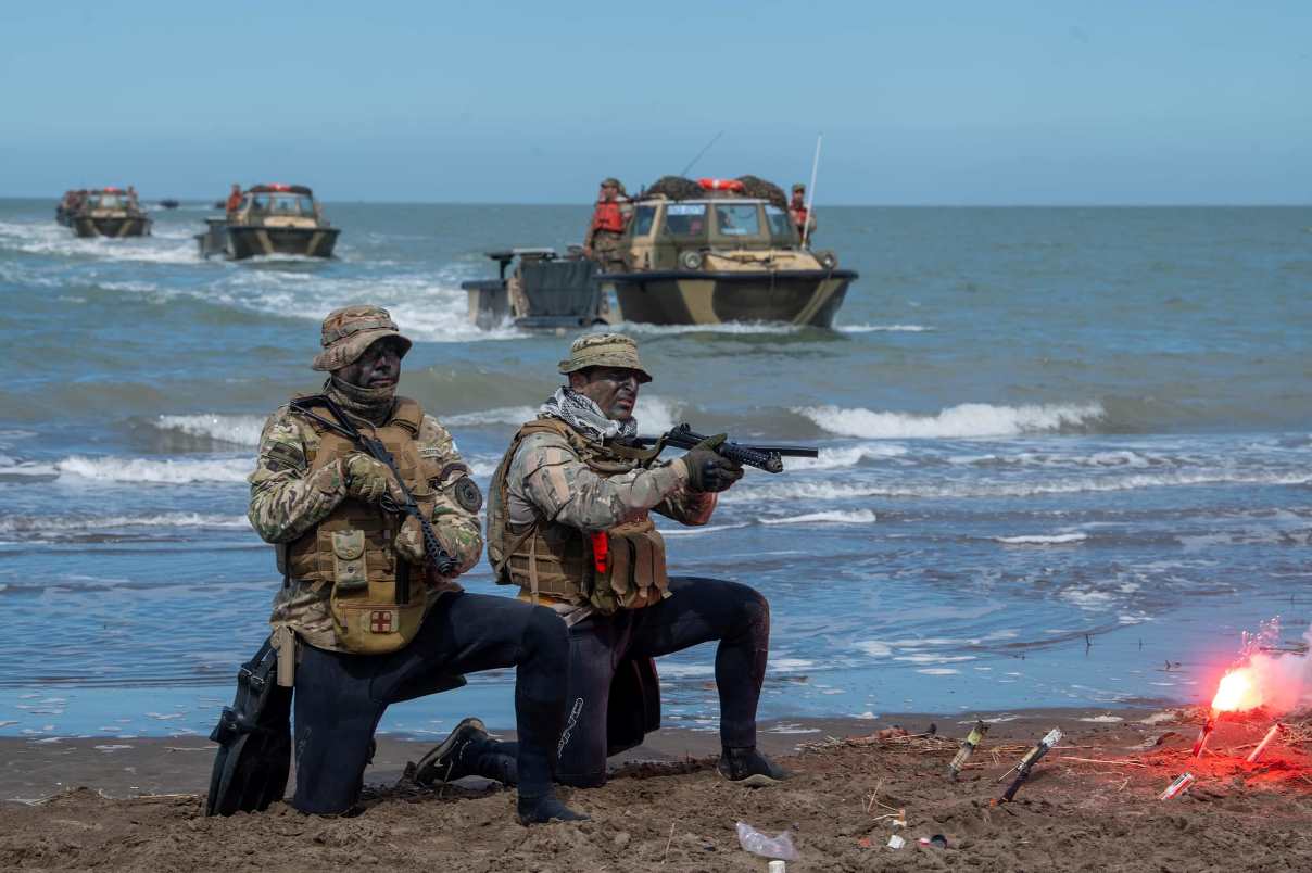 La Brigada Anfibia de la Infantería de Marina (BRIM) realizó una incursión con medios afines en una zona específica de playa y en concordancia con la Fuerza Conjunta de Intervención Rápida con un movimiento buque-costa presto y eficaz, a lo que se agrega el raudo pasar de las tropas aerotransportadas, vehículos mecanizados y acorazados con el apoyo heliportado y de aviones en misiones de apoyo directo.
