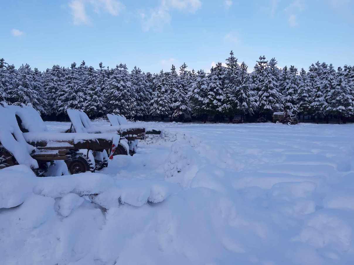 En otro sector del ejercicio mas frio y a distancia los Oto de 105 mm en terreno nevado.