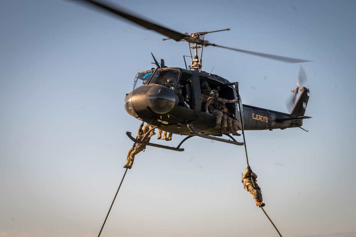 La insercion por Fast Rope fue permanente con maquinas de la AE.