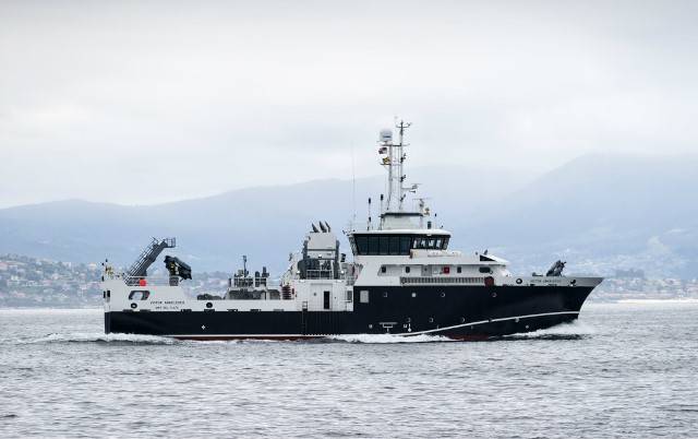 El buque de investigación pesquera “Victor Angelescu” se encuentra actualmente al sur de Cabo Verde camino de su destino en Argentina, concretamente el Mar del Plata, donde tiene previsto llegar entre el 5 y el 10 de octubre. Partía el pasado día 18 del puerto gallego de Vigo donde ha sido construido por el astillero Armón Vigo por encargo del Instituto Nacional de Investigación y Desarrollo Pesquero argentino (INIDEP).
