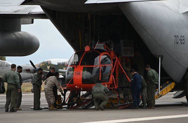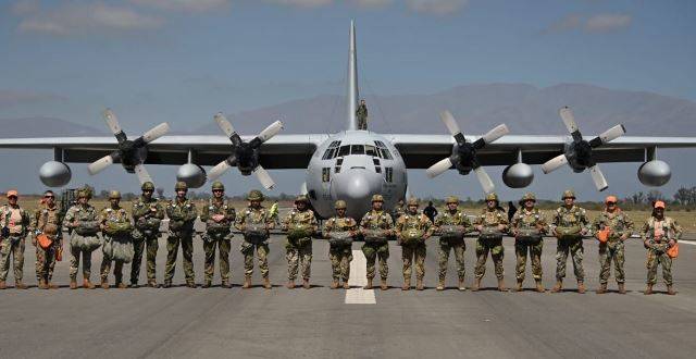 Aviones C-130H, KC-130H, Boeing 737/700, Fokker F-28 fueron los que trasladaron al personal y carga, a la vez que 900 paracaidistas más contenedores con carga, fueron lanzados desde los nobles cuatrimotores sobre una amplia zona árida, compleja y a considerable altitud, lo que complejiza las operaciones de lanzamiento diurno y nocturno. En estos lanzamientos, las zonas de llegadas fueron habilitadas, aseguradas operadas por los miembros del GOE (Grupo de Operaciones Especiales), de la fuerza.