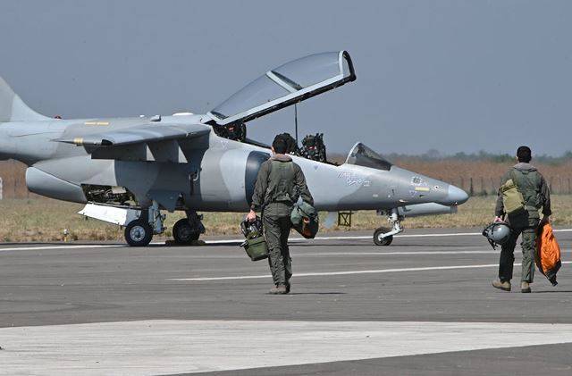 Los jets de la V Brigada Aérea realizaron reabastecimientos en vuelo con los cuatrimotores Hércules KC-130H y operaciones nocturnas. Aquí, el jefe del Comando de Adiestramiento y Alistamiento de la FAA, Brigadier Mayor Oscar Palumbo, participo de una operación nocturna con el Inspector General Brigadier Sergio Larsen y el Brigadier José Greissing.
