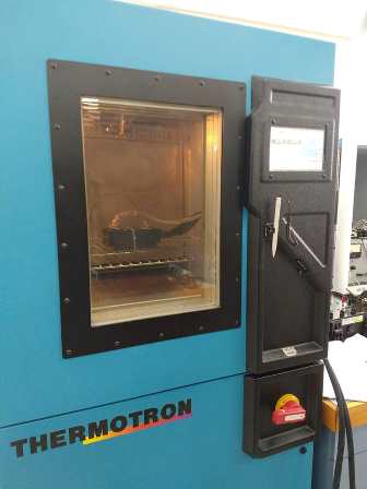 Testeos en la cámara climática en la sede de la empresa en la ciudad de Tandil, asiento de la VI Brigada Aérea.