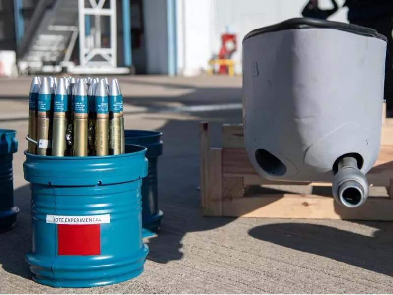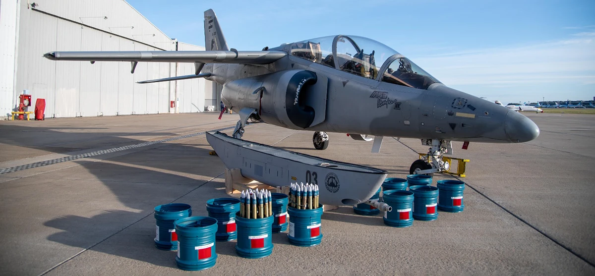 Munición 30 mm de los cañones DEFA del Pampa III de la Fuerza Aérea Argentina.