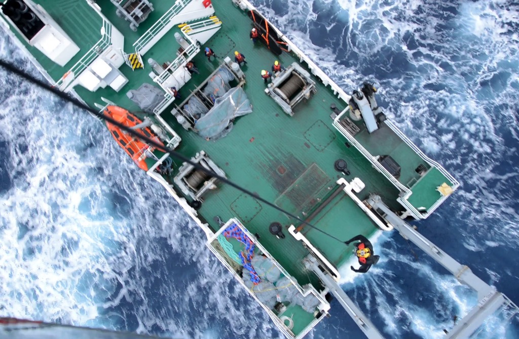 En una espectacular operación, la Armada Argentina pudo evacuar a un tripulante herido del buque de investigación pesquera “Victor Angelescu”, en aguas próximas a las Islas Georgias del Sur.
