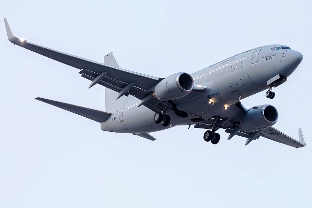 -El “nuevo” Boeing 737 de la FAA en fase final de aterrizaje en Málaga. (foto Richard Sánchez Gibelin)