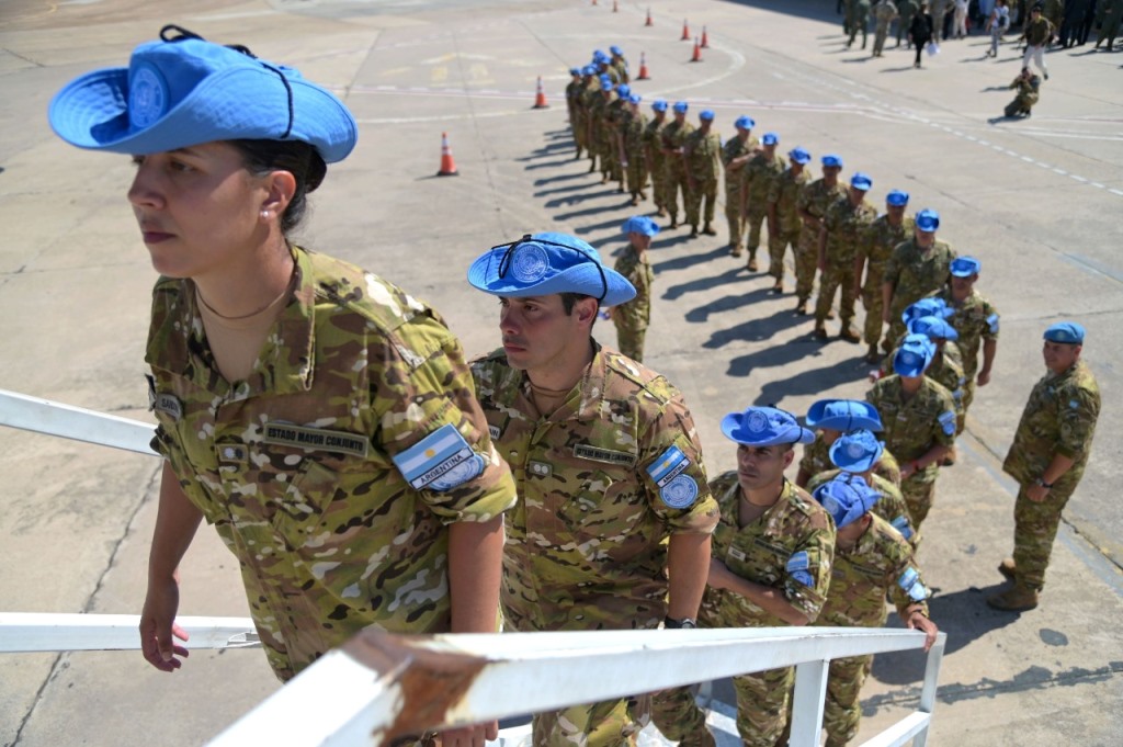 La institución aérea está a cargo del traslado de las tropas que se realiza con un Boeing 737-700, la mayoría de los miembros de este grupo pertenecen al Regimiento de Infantería de Montaña 10 del Ejército, cuyo asiento de paz se encuentra en la patagónica localidad de Covunco, en la provincia Neuquén.
