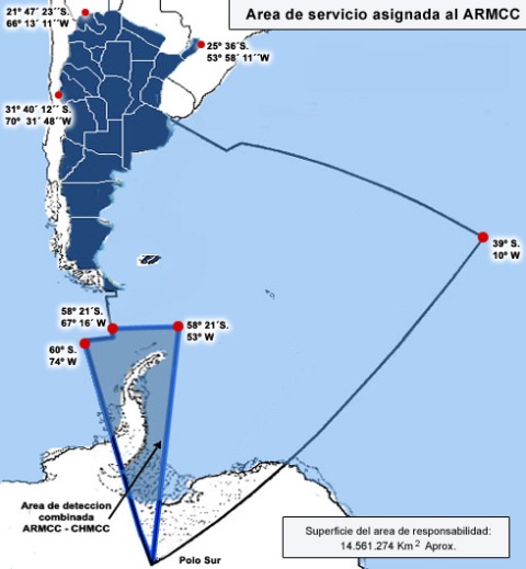 Asimismo, desde esas dos estaciones, Argentina recibe datos de 55 satélites de observación y 23 satélites geoestacionarios del sistema Cospas-Sarsat, que obtienen la señal de cada baliza de emergencia que se enciende en el mundo y retransmiten la información a 31 bases terrenas en distintos países. El segmento argentino se integro a la red mundial Cospas-Sarsat en marzo 2002 y tiene plena capacidad operativa (FOC) desde el 11 de diciembre de 2002. El 5 de junio de 2003, la responsabilidad de distribución de datos C/S para Islas Malvinas pasó del MCC de Chile (CHMCC) al ARMCC.