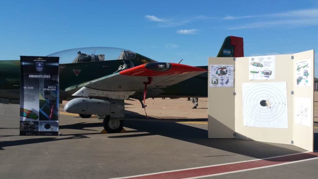 Estos pods fueron construidos por el Área de Material Rio IV, vital unidad de mantenimiento de la Fuerza, con el objetivo de proporcionar un sistema de armas de bajo calibre para las funciones de entrenamiento y ataque a objetivos livianos, pudiendo ser utilizados por las aeronaves EMB-312 Tucano, las primeras en que se van a implantar, y los reactores de entrenamiento y ataque ligero IA-63 Pampa. En este momento se está desarrollando una versión de mayor potencia, en calibre 12,7x99 mm. (Luis Piñeiro / Fotos Fuerza Aérea Argentina)