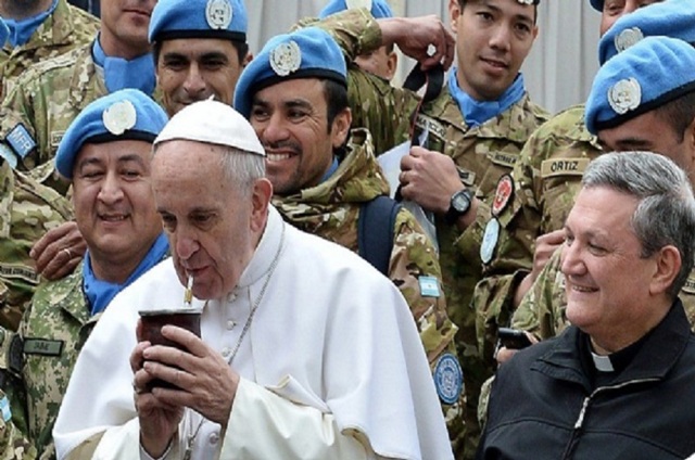 Efectivos de las Fuerzas Armadas de Argentina que prestan servicio para las Naciones Unidas en Chipre fueron recibidos en el auditorio Pablo VI, cerca de la Basílica de San Pedro, por el Papa Francisco, quien los bendijo y mostró su apoyo entusiasta a la misión que los soldados desarrollan en esa isla como elemento de paz, expresando su agradecimiento por las misiones humanitarias desarrolladas. Del encuentro participaron tropas destacadas del contingente nacional, del Ejército, la Infantería de Marina y la Fuerza Aérea en Chipre y también familiares de los mismos, que fueron recibidos por el Papa. La comitiva argentina estuvo al mando del Teniente Coronel Luis Guimpel y del Capellán castrense, Pablo Vilco García. (Luis Piñeiro, corresponsal de Grupo Edefa en Argentina)