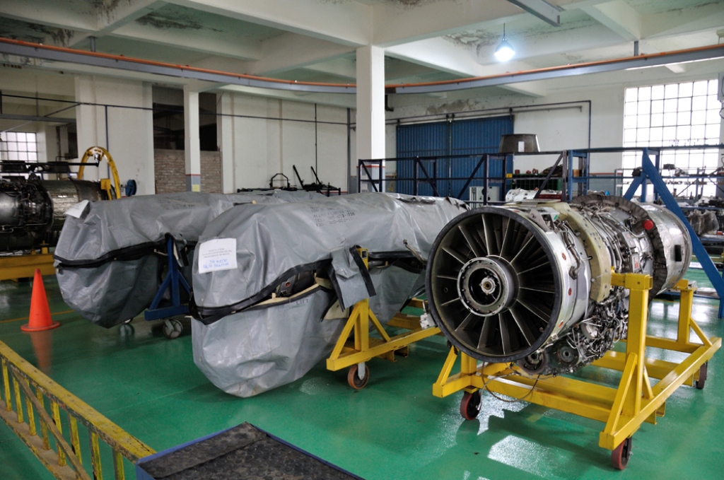 J-52 argentino permanecen a la espera de su intervención en el Escuadrón Talleres, Sección Motores del GT5.
