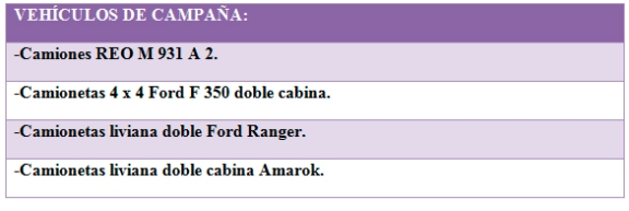 En el transcurso del año, el Ejército Argentino ingresó a su patrimonio vehículos de campaña y se encuentra actualmente en proceso de distribución a las unidades. El Plan de Reequipamiento Militar establecido por el jefe del Ejército tiene como objetivo la recuperación de las capacidades operacionales de la Fuerza, a través de la adquisición de vehículos, uniformes, correajes y materiales en general.