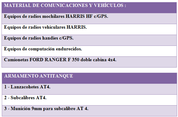La Fuerza entregó los siguientes efectos adquiridos en el país y en el extranjero: