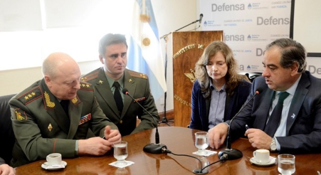 En la que ha sido la primera reunión con altas autoridades rusas desde la asunción del nuevo gobierno en Argentina, Julio Martínez, ministro de Defensa argentino recibió al Comandante de la Fuerza Terrestre de la Federación de Rusia, Coronel General Oleg Salyukov. Martínez expreso la satisfacción por la adquisición de helicópteros Mi-17 y los navíos Clase Neftegaz, que tan buen servicio están prestando en las instituciones armadas, y manifestó la necesidad de que “los equipos de trabajo de ambos estados mantengan las negociaciones para incorporar nuevos equipamientos destinados a las fuerzas argentinas”, en el marco de un proceso que debe incluir etapas de financiamiento y de servicio postventa y logístico. Recordemos que la Fuerza Aérea Argentina había adquirido un par de helicópteros rusos, quedando pendiente el uso de una opción por tres máquinas más.