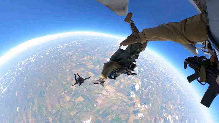 Miembros del Grupo de Operaciones Especiales (GOE) de la VII Brigada Aérea de la Fuerza Aérea Argentina realizaron una serie de saltos a gran altura para comprobar la aptitud de los materiales recientemente recibidos por la unidad.