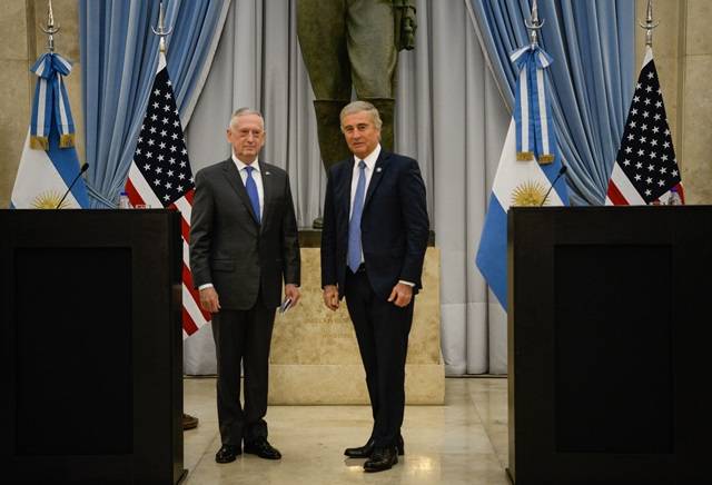 "Hoy queremos construir sobre esa base la cooperación en materia de defensa, trabajando juntos cuestiones de asistencia humanitaria y participando de grupos de trabajo bilaterales", añadió el secretario estadounidense. Finalmente Mattis se refirió al "creciente papel de liderazgo de Argentina en el escenario global", demostrado en que será el país sede de la Cumbre del G20 a fines de noviembre próximo. "Apuntamos a encontrar nuevas formas para profundizar nuestra relación en materia de Defensa y forjar juntos un futuro más brillante para la próxima generación", concluyó.