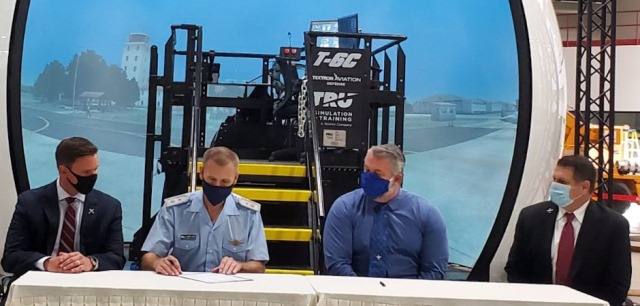 Completando el programa del sistema de armas que está prestando un excelente servicio en la formación de los pilotos de la Fuerza, ahora se realizó un salto cualitativo en la preparación y el adiestramiento con la provisión de nuevo equipamiento. En el marco de la adquisición del simulador de vuelo del sistema de armas T-6C TEXAN se concretó la firma del convenio marco para la aceptación de esta capacidad que será incorporada a la Fuerza Aérea Argentina (FAA). El encuentro se realizó en la empresa TRU SIMULATION, en Goose Creek, Carolina del Sur, en los Estados Unidos. TEXTRON se encarga de gestionar los requerimientos necesarios para estas máquinas de la Escuela de Aviación Militar.