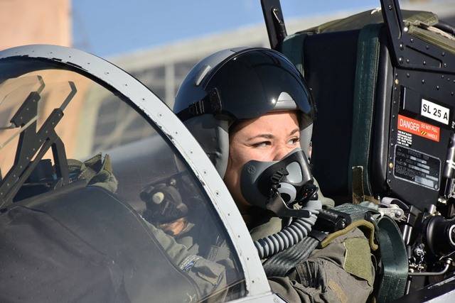Fotografía: Fotos de graduación de la Teniente Sofía María Vier, primera mujer piloto de aviones de combate de la Fuerza Aérea Argentina.