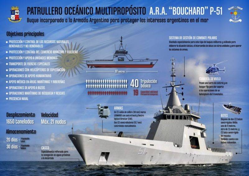 Asimismo, como parte del adiestramiento, antes de partir a Francia la tripulación se alistó y adiestró previamente en Argentina en el simulador de navegación y maniobra del Centro de Navegación y Entrenamiento Marítimo Fluvial (CIEMF).El patrullero oceánico ARA “Bouchard”, bautizado originalmente “L´Adroit”, fue denominado “Bouchard” en honor al marino francés y héroe naval, Capitán de Navío Hipólito Bouchard, quien luchó al servicio de las Provincias Unidas del Río de la Plata y del Perú; materializa la primera incorporación de un total de cuatro buques patrulleros oceánicos adquiridos por el Estado Argentino a la empresa francesa Naval Group en el marco del “Proyecto de Recuperación de la Capacidad de Patrullado Naval Marítimo” llevado adelante por la Armada Argentina y aprobado mediante Decreto 1.078/2018.El objetivo del proyecto de incorporación de los patrulleros es mejorar la vigilancia y control marítimo con medios navales de superficie en el área oceánica de interés, cuya extensión es de 1.159.063 km² en la Zona Económica Exclusiva de la República Argentina, a los efectos de preservar los recursos vivos y no vivos del mar.