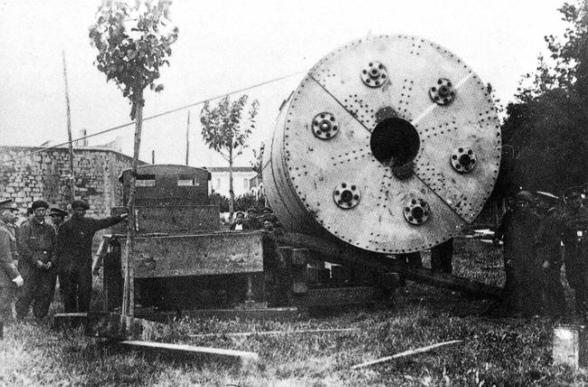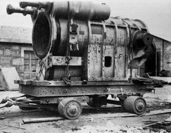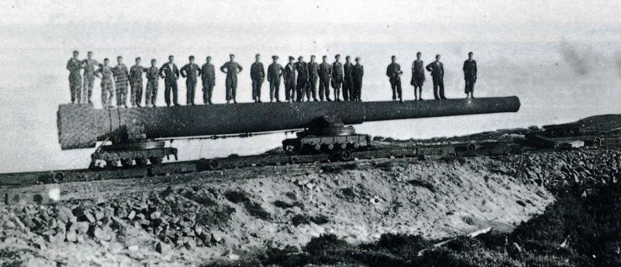 Para situar en el asentamiento los dos tubos y otras tantas cureñas de 86 y 42 toneladas de peso unitario, respectivamente, hubo que utilizar la vía móvil. Es decir, tender tramos de vía sobre las que se desplazaban con toda lentitud las vagonetas con su monstruosa carga y que, apenas cubiertos, eran levantados para colocarlos de nuevo en vanguardia. En este caso las vagonetas eran ligeras pues “solo” pesaban siete toneladas, tenían una altura de medio metro y al circular por un ancho de vía de 0,95 metros resultaban muy estables.
