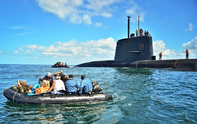 Foto de portada: TR-1700 ARA “Santa Cruz” en maniobras con los buzos tácticos en costas patagónicas.