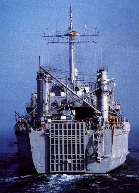5) —prestado a devolver—, amén de otras pocas LCM (los franceses también colaboraron con un LSD, el Foudre, ex LSD-12, buque cuya bandera había pasado de norteamericana a griega y a británica, antes que a francesa y española por poco tiempo).