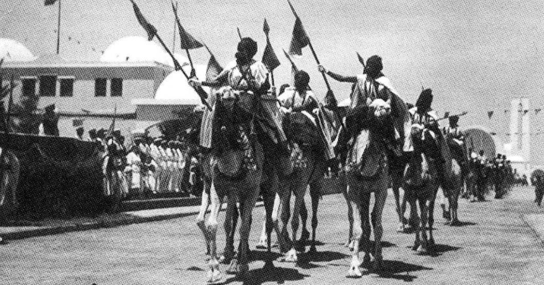 Foto: Desfile del grupo nómada GandaraIV el día de la victoria de 1956