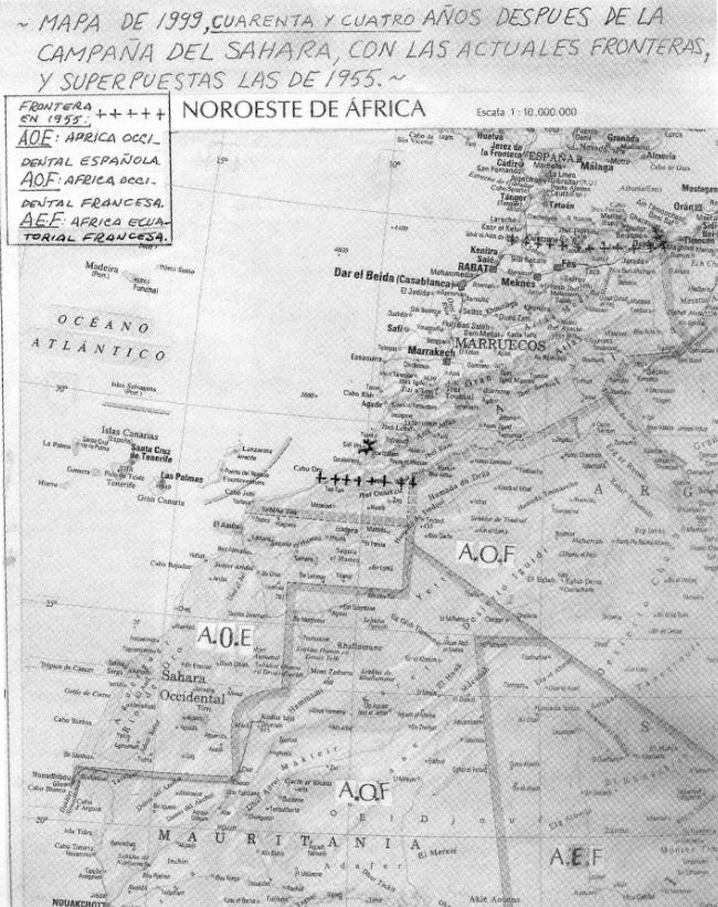 N. de la R.: El autor, hoy jubilado de Aviación Civil y antiguo caballero legionario, fue voluntario en el entonces Sahara español, Rio de Oro, cuando se creó la Bandera Expedicionaria en junio de 1956, con 20 años de edad, procedente de la 13 compañía de la III Bandera del Tercio “Gran Capitán”, en Tahuima, Melilla. Tras mes y medio de instrucción allí, desembarcando en las playas Hasi Aotman, a 25 km. de El Aaiún el 1 de julio del citado año. Al organizarse la Bandera, fue ascendido a cabo de escuadra de fusiles, pasando más tarde a mandar una escuadra de morteros ligeros en la 3ª sección de la 1ª compañía, en la que permaneció hasta su licenciamiento en mayo de 1958, finalizadas las últimas operaciones. Le concedieron la Medalla de la Campaña del Sahara y la Cruz Roja al Mérito Militar por oficio recibido en Madrid, fechado en El Aaiún en julio de 1958, dos meses después de licenciarse.