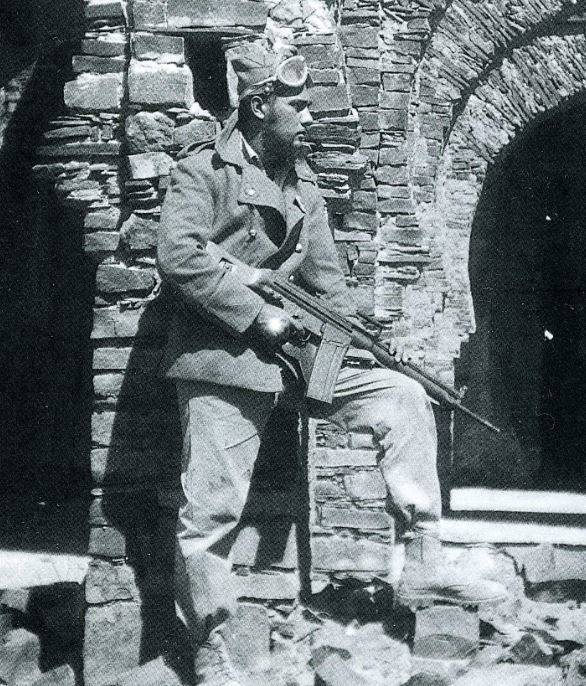 Foto: El autor con una ametralladora Cetme calibre 7,62 en prueba.