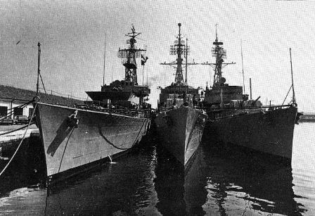 Foto: De izquierda a derecha la fragata rápida D-51 “Liniers”y los destructores D-65
