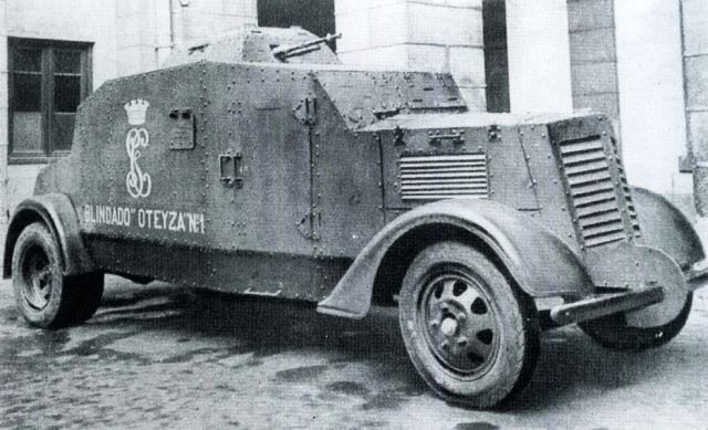 Ante Ia incipiente motorización de Ias unidades militares y policiales, el Instituto Armado de Ia Guardia Civil no quiso quedarse atrás, y en octubre de 1935 presentaba un blindado de líneas modernas, diseñado por el jefe de los servicios motorizados del Ia Benemérita, a quien debía su denominación: “Oteyza”. No se sabe si el vehículo llegó realmente a prestar servicio con Ia Guardia Civil.