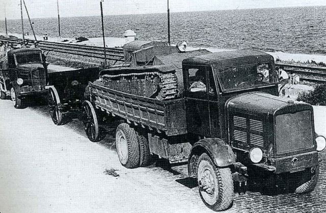 Partiendo de este diseño se construyeron sendos “tractores de artillería”, uno ligero y otro pesado. Del segundo hablaremos posteriormente, y de Ia versión “ligera” del mismo tractor, como se dijo entonces, aunque, en realidad era copia de uno ruso denominado “Konsomolet”, al parecer (debieron recuperarse algunos y fueron enviados a La Naval), Ia propaganda de Ia época difundió unas fotos remolcando un mortero “Franco” de 120 mm. y un cañón contracarro nacional de 45 mm. Tampoco prosperó este curioso proyecto.